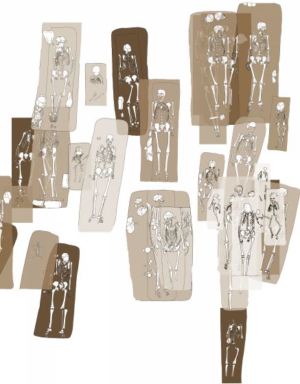 A sírokat kezdetben egymás mellé ássák. A temető területe hamarosan megtelik, ezért a rokonokat egymás fölé fektetik, családi sírcsoportok alakulnak ki. A legelőkelőbb családok tagjai a hajó déli oldala mentén nyugszanak. A nőket és leányokat S-végű karikákkal, gyöngyökkel, átfúrt római pénzekkel, gyűrűkkel felékszerezve temetik el.